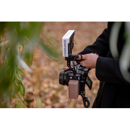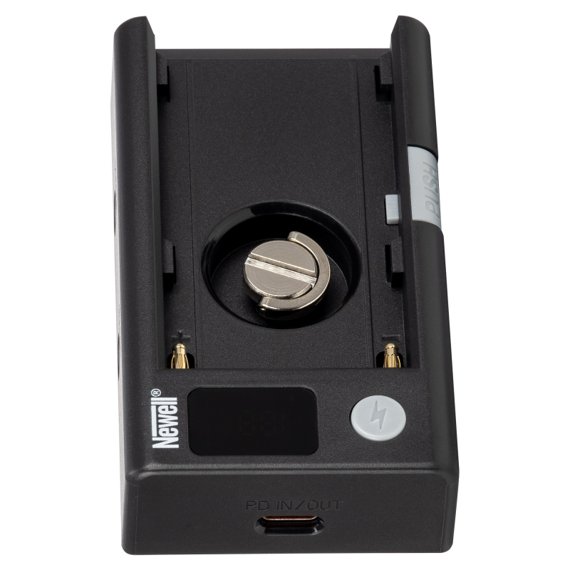 Adapter Newell DC–USB wyposażono w gwint 1/4”, który pozwala zamocować go na niemal każdym sprzęcie operatorskim – od klatki do aparatu, przez rig filmowy, po statyw. Gumowe wykończenie poprawia stabilność, chroni przed zarysowaniami i zapobiega niepożądanemu przesuwaniu się adaptera. Specjalny system blokady dba o to, by akumulator NP-F nie wypiął się podczas wykonywania dynamicznych ruchów. To konstrukcja stworzona do intensywnej pracy w różnych warunkach.