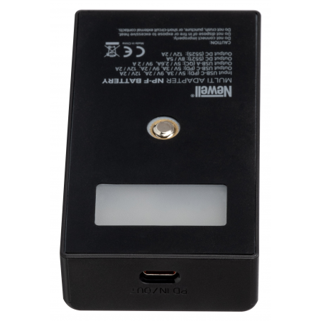 W przedniej części adaptera Newell DC - USB znajdziesz ekran LCD, który wyświetla procentowy poziom naładowania Twojego akumulatora NP-F. To ogromne ułatwienie podczas pracy w terenie – od razu wiesz, jak długo możesz jeszcze zasilać sprzęt oraz kiedy warto przygotować kolejne ogniwo. Wyświetlacz pobiera niewiele energii, dzięki czemu nie wpływa znacząco na czas pracy zestawu. Informacja o stanie naładowania jest zawsze widoczna i czytelna, nawet w trudniejszych warunkach oświetleniowych.