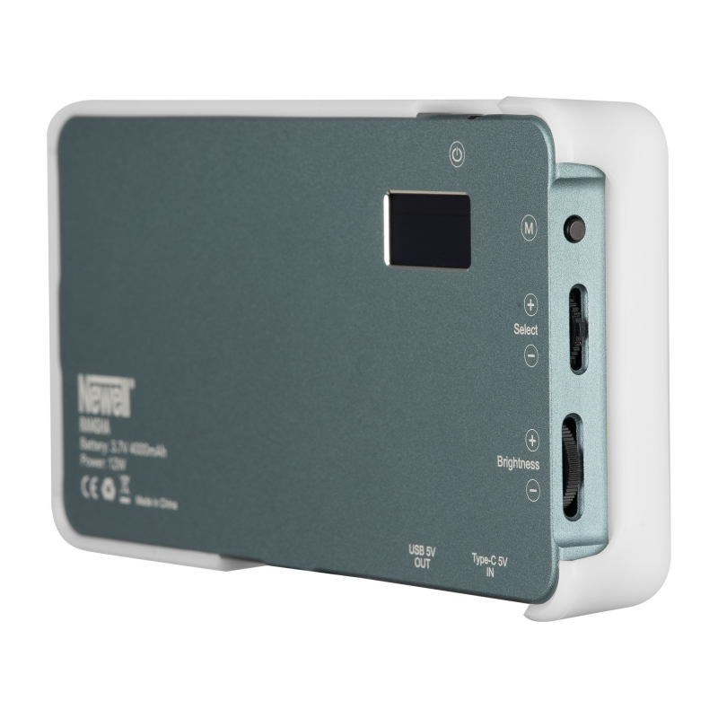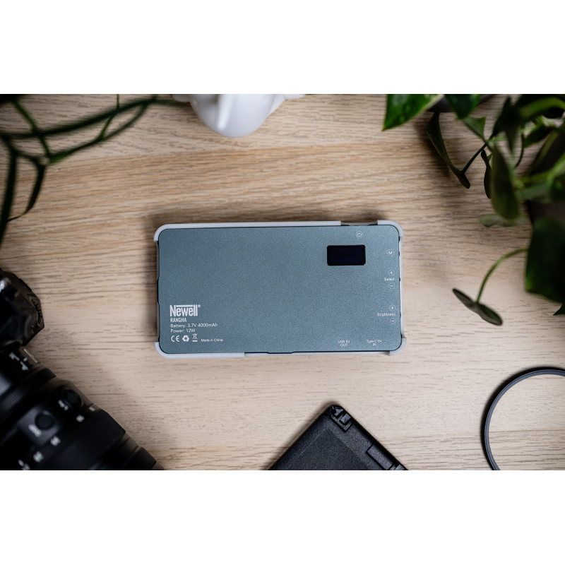 Lampa LED Newell RGB-W Rangha to "must have" w torbie każdego vlogera, filmowca lub fotografa. Duża moc zamknięta w kompaktowej obudowie sprawia, że z powodzeniem wykorzystasz ją do doświetlenia planu filmowego, a także w fotografii produktowej, ulicznej lub makro. Jej największym atutem jest pełny zakres wsparcia dla kolorów RBG oraz możliwość płynnej zmiany nasycenia, mocy oraz temperatury barwowej. Dzięki zastosowaniu wyjścia USB, wyposażone w pojemny akumulator urządzenie może też pełnić funkcję power banku.