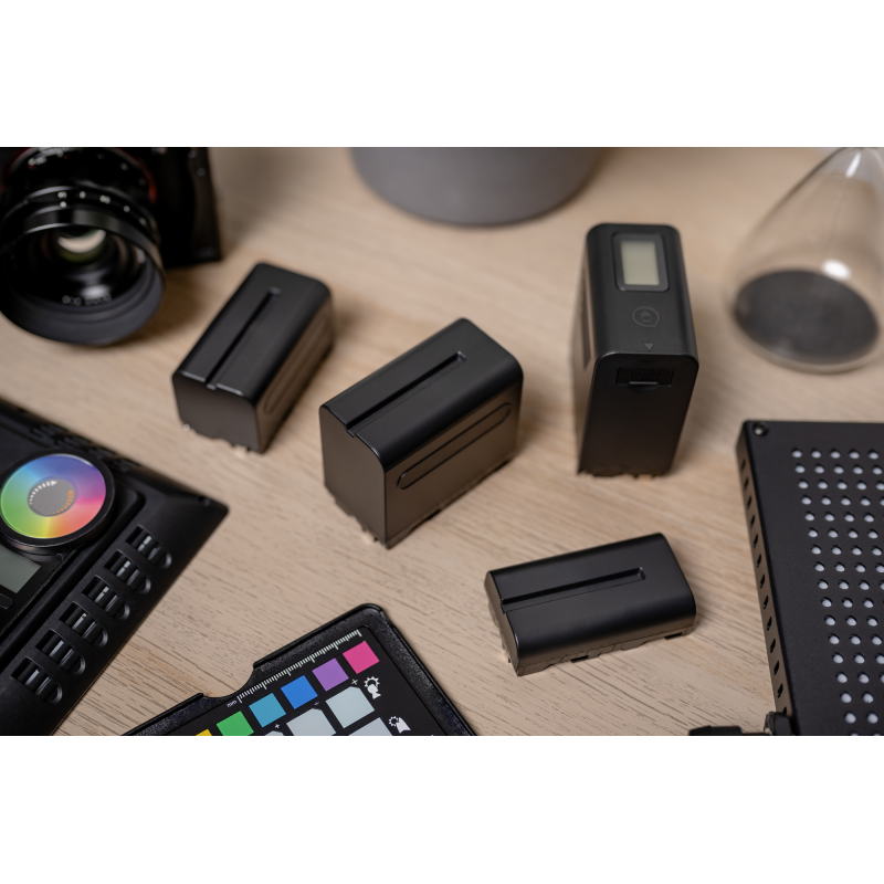 • Urządzenia zasilane akumulatorami typu NP-F (kamery, lampy, rekordery)