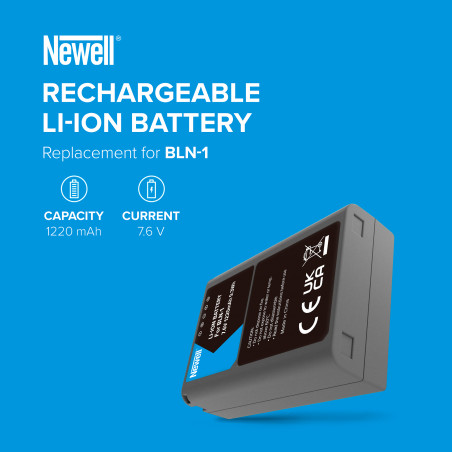 Newell BLN-1 to zamiennik akumulatora przeznaczony do aparatów fotograficznych i kamer Olympus. Zastosowano w nim najlepszej jakości ogniwa, inteligentny system regulujący proces ładowania oraz zabezpieczenia przed przegrzaniem, przeciążeniem oraz przeładowaniem. Akumulator oferuje aż 1220 mAh pojemności. Możesz doładowywać go w dowolnym momencie, nie martwiąc się o wystąpienie tzw. efektu pamięci. Ten zamiennik to idealny wybór dla amatorów, pasjonatów i profesjonalistów, którzy cenią sobie jakość, bezpieczeństwo oraz zaawansowaną technologię.