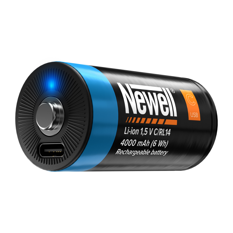 Akumulatory Newell C/R14 USB-C 4000 mAh (2 szt. blister) wyposażono w czytelny wskaźnik LED, który informuje o przebiegu ładowania. Migające niebieskie światło sygnalizuje, że ogniwo się ładuje, natomiast stałe światło oznacza, że cały proces pomyślnie dobiegł końca. To proste, a zarazem praktyczne rozwiązanie pozwala łatwo kontrolować stan ogniwa, bez potrzeby korzystania z dodatkowych urządzeń i bez zgadywania, czy akumulator jest już gotowa do pracy.
