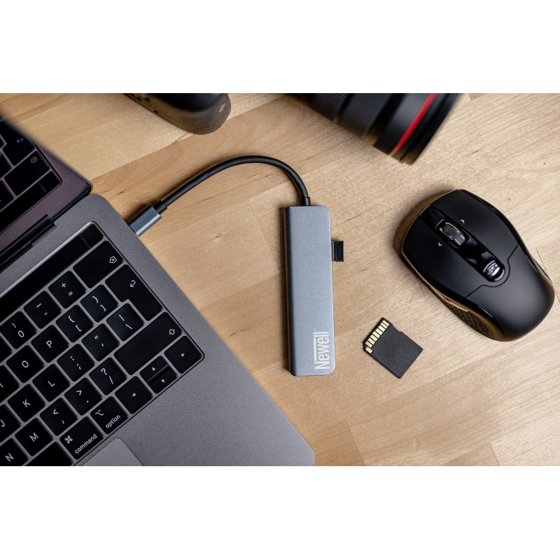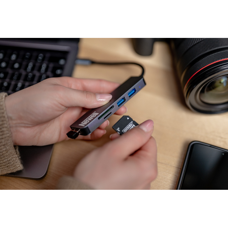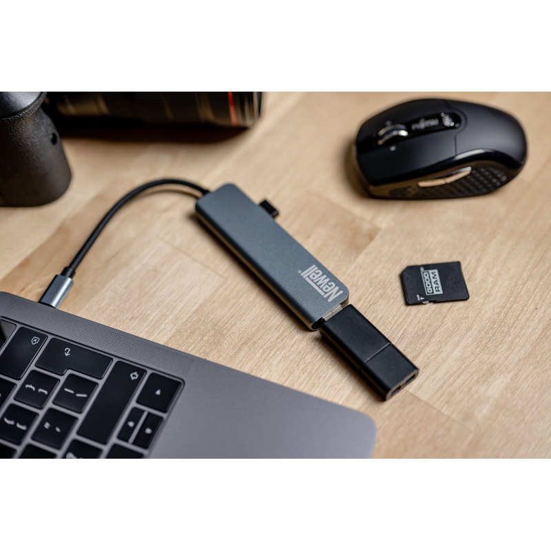 Minimalizm nie zawsze idzie w parze z funkcjonalnością. Jeśli pracujesz z kilkoma dyskami zewnętrznymi lub podłączasz do komputera dodatkowe akcesoria, liczba portów dostępnych na obudowie Twojego komputera może być niewystarczająca. Wybierając Hub Newell 5 w 1 zyskujesz dostęp do 2 niezależnych gniazd na karty pamięci oraz 3 portów USB.