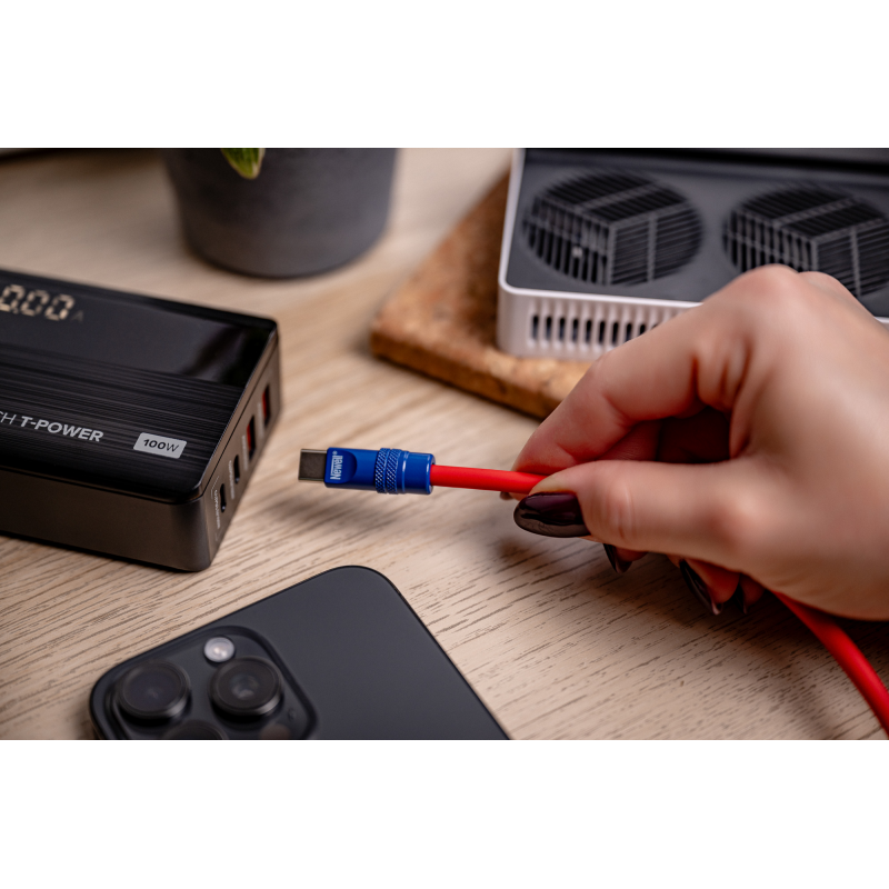 Newell USB-C – USB-C 100 W to solidny kabel do szybkiego ładowania laptopów, smartfonów, tabletów, power banków, stacji dokujących i innych urządzeń wspierających technologię Power Delivery. Maksymalna moc uzupełniania energii wynosi tu aż 100 watów. Kabel oferuje 2 metry długości. Zabezpiecza go solidny silikonowy oplot o grubości 5,4 milimetrów odporny na zginanie i niskie temperatury. Aluminiowe końcówki zapewniają dodatkowe wsparcie podczas intensywnej eksploatacji. Dołączona opaska ułatwia przechowywanie po zwinięciu. Kabel dostępny jest w wielu wariantach kolorystycznych, co znacząco ułatwia identyfikację – w szufladzie, plecaku lub niezbędniku z elektroniką. Produkt objęty 40-miesięcznym programem ochrony Newell.