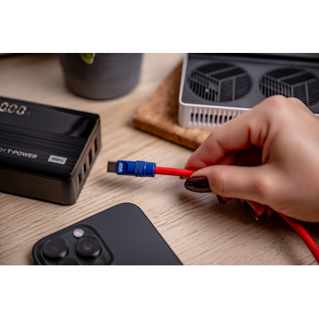 Solidne akcesoria elektroniczne poznaje się po detalach. W tym przypadku warto zwrócić uwagę na aluminiowe końcówki, które nie tylko wyglądają elegancko, ale też znacząco zwiększają odporność na zużycie. Są wytrzymałe, nie wyginają się i bez problemu znoszą intensywne, codzienne użytkowanie. Już po pierwszym kontakcie wiesz, że kabel Newell USB-C – USB-C 100 W zostanie z Tobą na dłużej – solidna konstrukcja, średnica 5,4 mm i silikonowy oplot od razu budzą zaufanie. Każdy element został tu zaprojektowany tak, by przewód służył Ci przez długie lata.