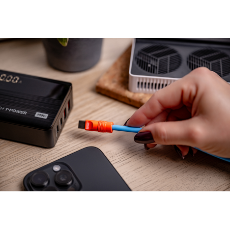 • kabel Newell USB-C - USB-C 100 W, 1,5 m, silikonowy, spiralny, niebiesko-pomarańczowy