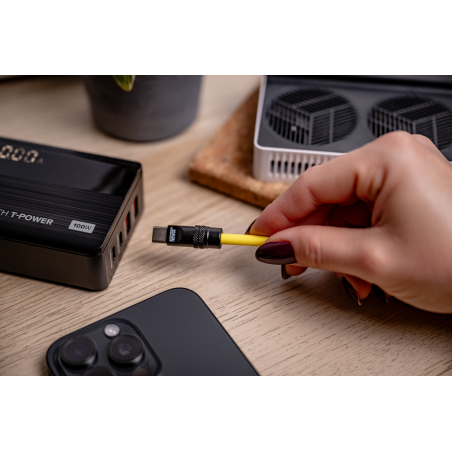 Aby skorzystać z pełnej mocy ładowania 100 W, konieczne jest użycie kompatybilnej ładowarki oraz urządzenia obsługującego technologię Power Delivery o odpowiednich parametrach.