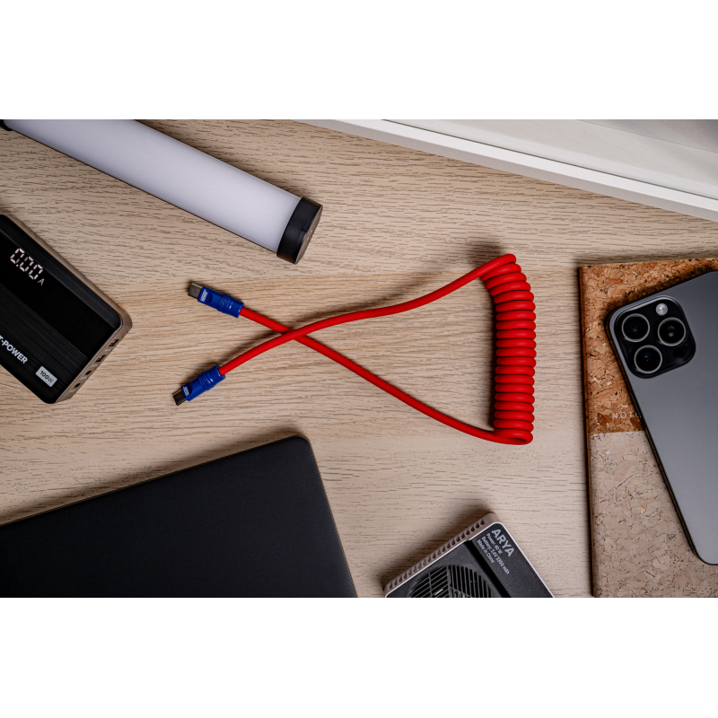 • model: kabel Newell USB-C - USB-C 100 W, 1,5 m, silikonowy, spiralny, czerwono-granatowy
