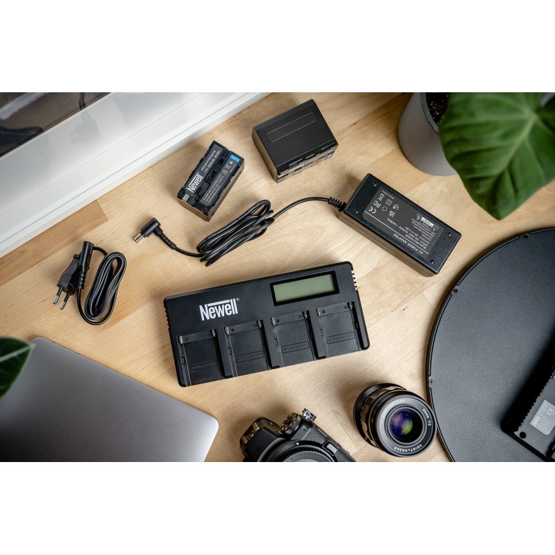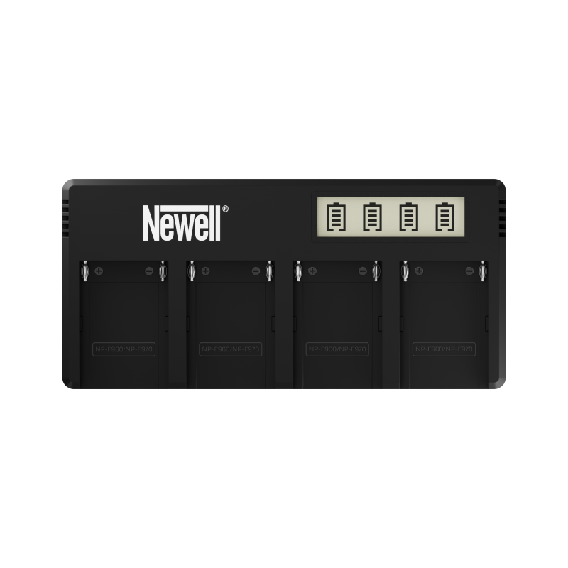 Newell DF-4CH to ładowarka do akumulatorów z serii NP-F. Pozwala ona uzupełniać moc w 4 ogniwach jednocześnie. Podświetlany wyświetlacz umożliwia wygodną kontrolę procesu ładowania. Urządzenie wyposażono również w nowoczesne kontrolery regulujące parametry procesu ładowania, które chronią przed przegrzaniem i przeładowaniem, dbając jednocześnie o maksymalną żywotność akumulatorów.