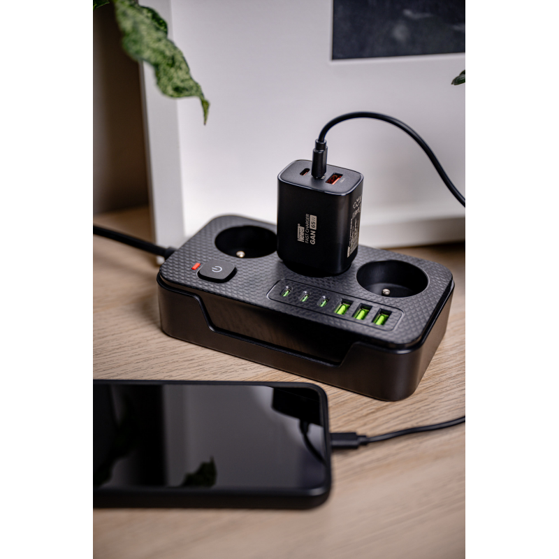 Ładowarkę sieciową Newell GaN 65 W wyposażono w szereg zabezpieczeń gwarantujących najwyższy komfort użytkowania. Nowoczesne technologie zapewniają ochronę przed przepięciami i zwarciami. Bezpieczne i szybkie ładowanie wspierają również standardy Power Delivery oraz Quick Charge 3.0.