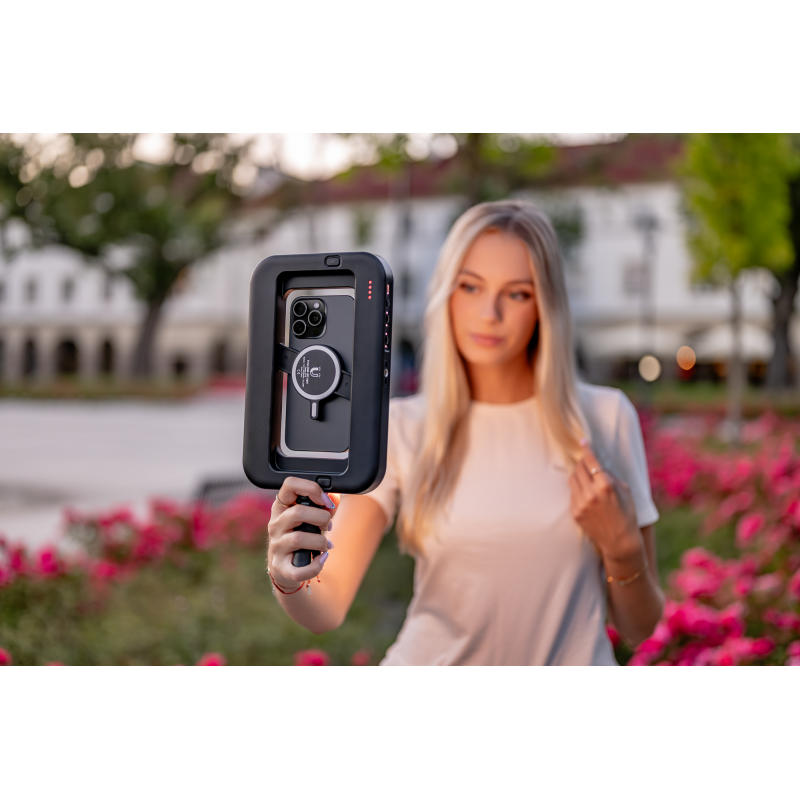 Lampa LED Newell Freya została zaprojektowana z myślą o użytkownikach iPhone’ów wspieranych przez technologię MagSafe. Mocny magnes zapewnia błyskawiczne i stabilne mocowanie telefonu w centralnej części urządzenia. Dzięki temu smartfon, którym filmujesz lub robisz zdjęcia, zawsze znajduje się w idealnej pozycji. Zyskujesz nie tylko doskonałe doświetlenie kadru, ale też wygodę obsługi i pewny chwyt. To idealne rozwiązanie do vlogów, selfie, live’ów i wszędzie tam, gdzie liczy się szybkość reakcji i ponadprzeciętna mobilność.