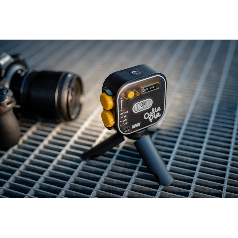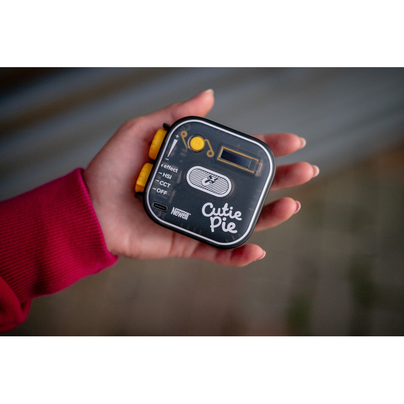 Newell RGB Cutie Pie to kompaktowa lampa LED wyróżniająca się unikalną obudową i mnogością oferowanych funkcji. To idealny wybór dla twórców video, fotografów, vlogerów i podróżników, którzy cenią sobie mobilność i możliwość personalizacji ustawień. Dzięki regulacji temperatury barwowej w zakresie od 2500 K do 9900 K oraz możliwości zmiany koloru światła w obrębie przestrzeni barw HSI (odcień, nasycenie, jasność), Cutie Pie oferuje niemal nieograniczone możliwości eksperymentowania z oświetleniem. Na pokładzie nie zabrakło też 21 gotowych efektów specjalnych. W zestawie z lampą otrzymujesz również szereg przydatnych akcesoriów: dyfuzor, klips montażowy, adapter zimnej stopki, statyw oraz kabel USB-C.