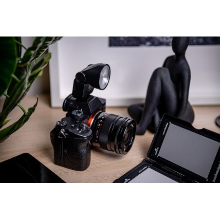 Ruchomą głowicę lampy Newell Elea Mini możesz odchylić o 90°, co pozwala odbić światło od sufitu lub ścian. To sprawdzony sposób na uzyskanie miękkiego, naturalnego oświetlenia i łagodnych przejść tonalnych bez ostrych cieni. Dzięki tej funkcji nawet tak niewielka lampa błyskowa pozwala osiągnąć efekt znany z większych, studyjnych rozwiązań. To ogromna zaleta przy portretach i zdjęciach robionych w pomieszczeniach, gdy zależy Ci na naturalnym wyglądzie skóry i przyjemnej miękkości.