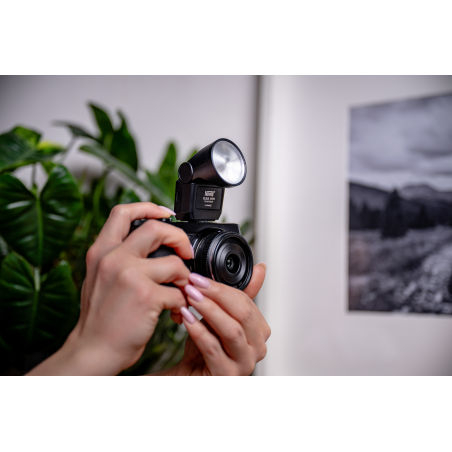 Lampa błyskowa Newell Elea Mini to kompaktowe narzędzie, które pozwala w prosty sposób rozpocząć pracę z błyskiem i przejąć pełną kontrolę nad światłem. Dzięki niewielkim rozmiarom możesz mieć ją zawsze przy sobie. Soczewka Fresnela pozwoli skutecznie doświetlić kadry w trudniejszych warunkach oświetleniowych. Cztery poziomy mocy pozwalają precyzyjnie dopasować intensywność błysku do sytuacji. Ruchoma głowica umożliwia odbicie światła od sufitu lub ścian, zapewniając miękkie, naturalne efekty. Wbudowany akumulator 300 mAh, ładowany przez port USB-C, eliminuje potrzebę stosowania tradycyjnych baterii. Newell Elea Mini to idealny wybór dla osób, które chcą poprawić jakość swoich zdjęć i rozbudować swój fotograficzny warsztat bez inwestowania w duże systemy oświetleniowe.