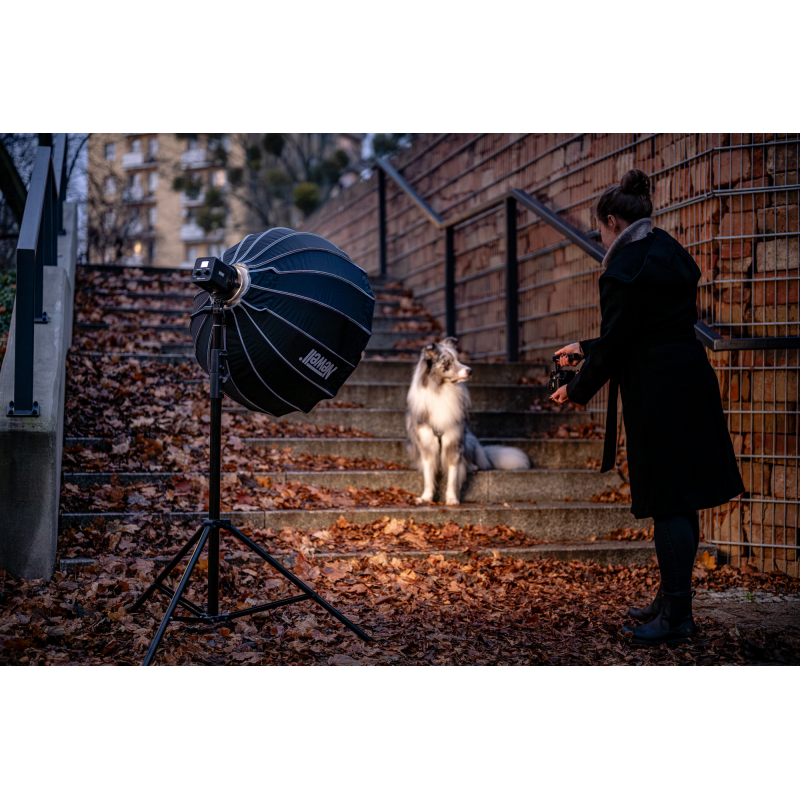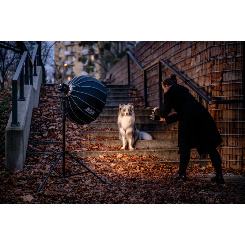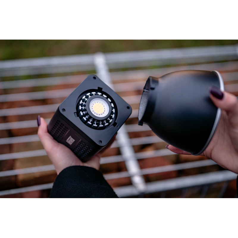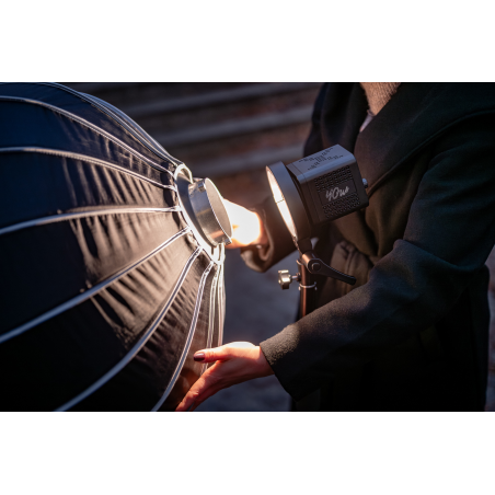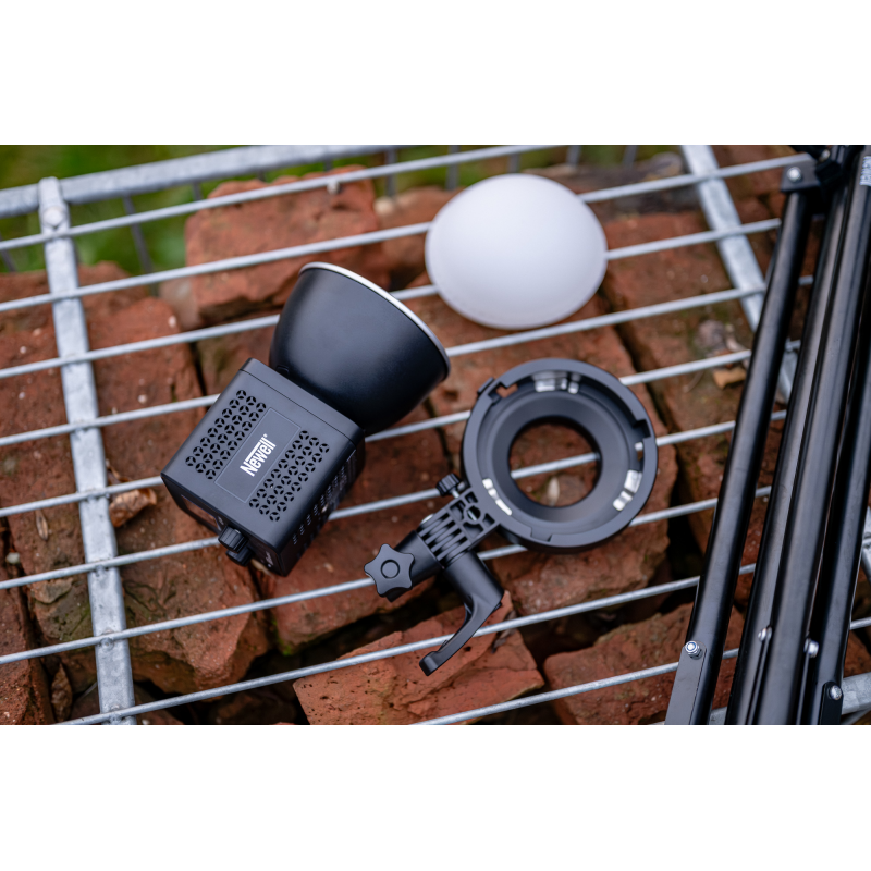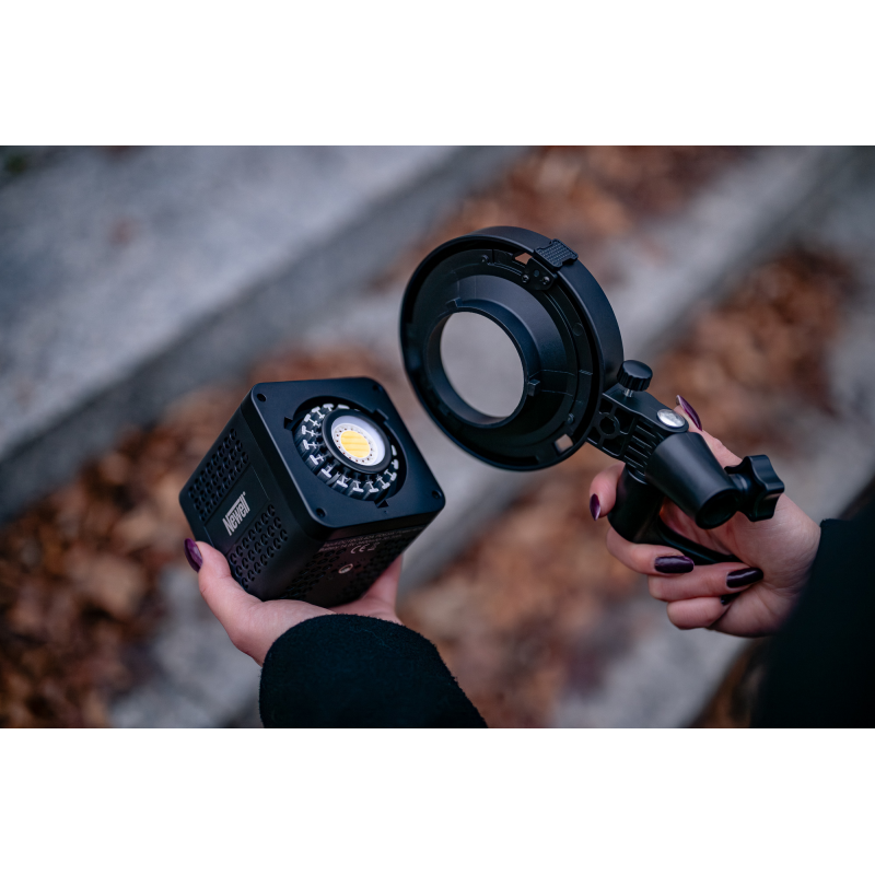 Lampa Newell Tara 40 RGB została wyposażona w mocowanie Mini Bowens, które zapewnia dużą elastyczność w pracy ze światłem, przy zachowaniu niewielkiej wagi całego setupu. Dołączona do zestawu czasza 55º to dopiero początek możliwości. Na rynku znajdziesz dziesiątki kompatybilnych akcesoriów w standardzie Mini Bowens, różne rodzaje wrót oraz gridy, które pozwalają precyzyjnie kształtować charakter wiązki światła. Ich niewielkie wymiary sprawiają, że cały zestaw pozostaje lekki i mobilny, co jest szczególnie ważne podczas pracy w plenerze czy w ograniczonej przestrzeni studia.
