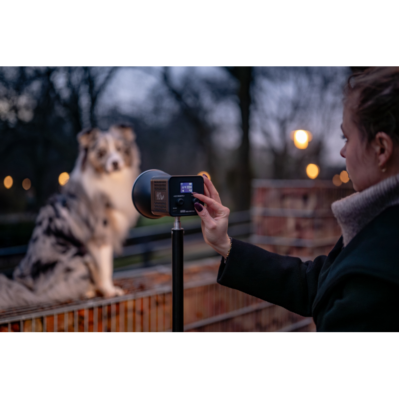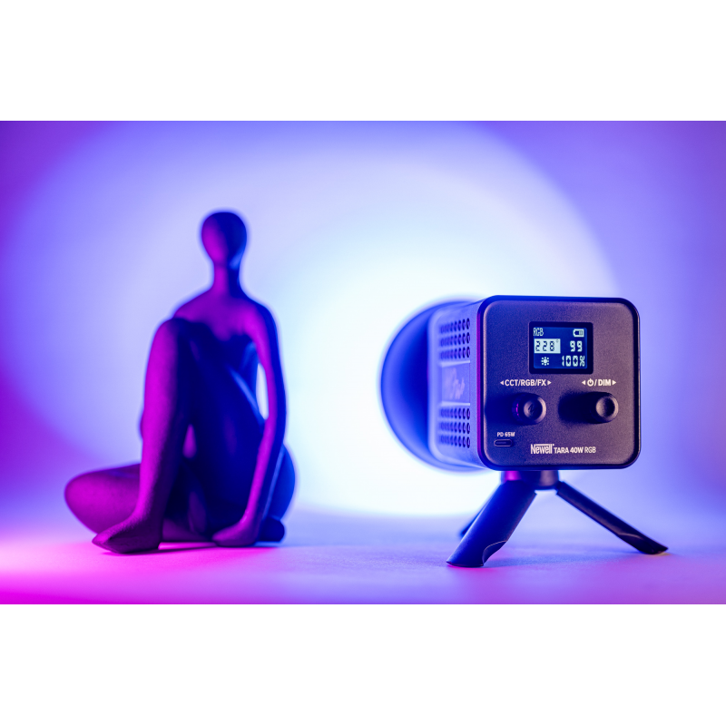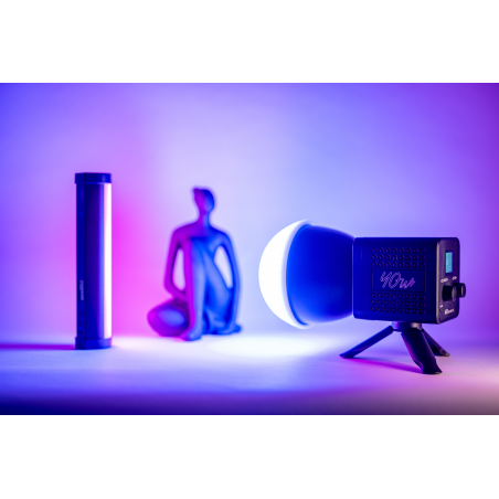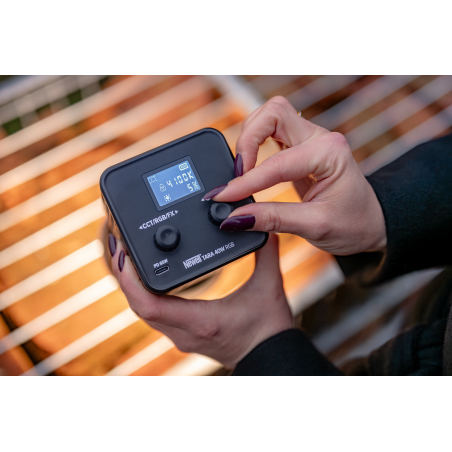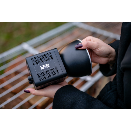 Z lampą Newell Tara 40 RGB ustawianie parametrów światła jest szybka i bezproblemowa. Dwa ergonomiczne pokrętła pozwalają na wygodne sterowanie jasnością, temperaturą barwową, kolorami RGB i efektami specjalnymi. Podświetlany ekran ułatwia kontrolę wszystkich parametrów nawet w ciemnym studiu czy podczas pracy w plenerze. Dzięki przejrzystemu interfejsowi błyskawicznie zmienisz ustawienia i dostosujesz światło do swoich potrzeb, bez zbędnego zagłębiania się w skomplikowane menu.