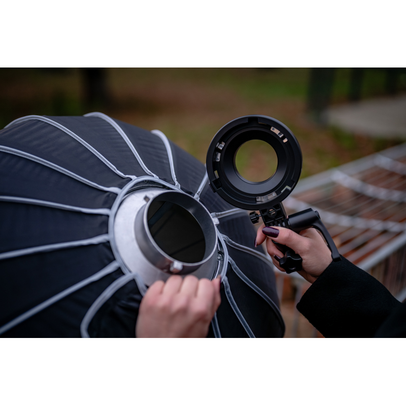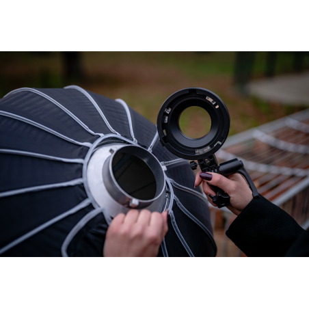 W zestawie z lampą Newell Tara 40 RGB znajdziesz również adapter Bowens / Mini Bowens, który pozwala korzystać z pełnowymiarowych modyfikatorów światła w popularnym standardzie, takich jak softboxy, czasze, gridy, wrota czy beauty dishe. Dzięki temu kompaktowy model Tara 40 RGB zyskuje funkcjonalność dużych lamp studyjnych, bez konieczności inwestowania w nowy sprzęt. Adapter zainstalujesz w ciągu kilku sekund, bez użycia narzędzi. Dzięki mocowaniu statywowemu z trzpieniem 16 mm zyskujesz dodatkowe podparcie, które świetnie sprawdzi się przy pracy z cięższymi akcesoriami.