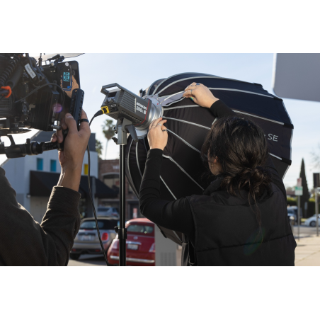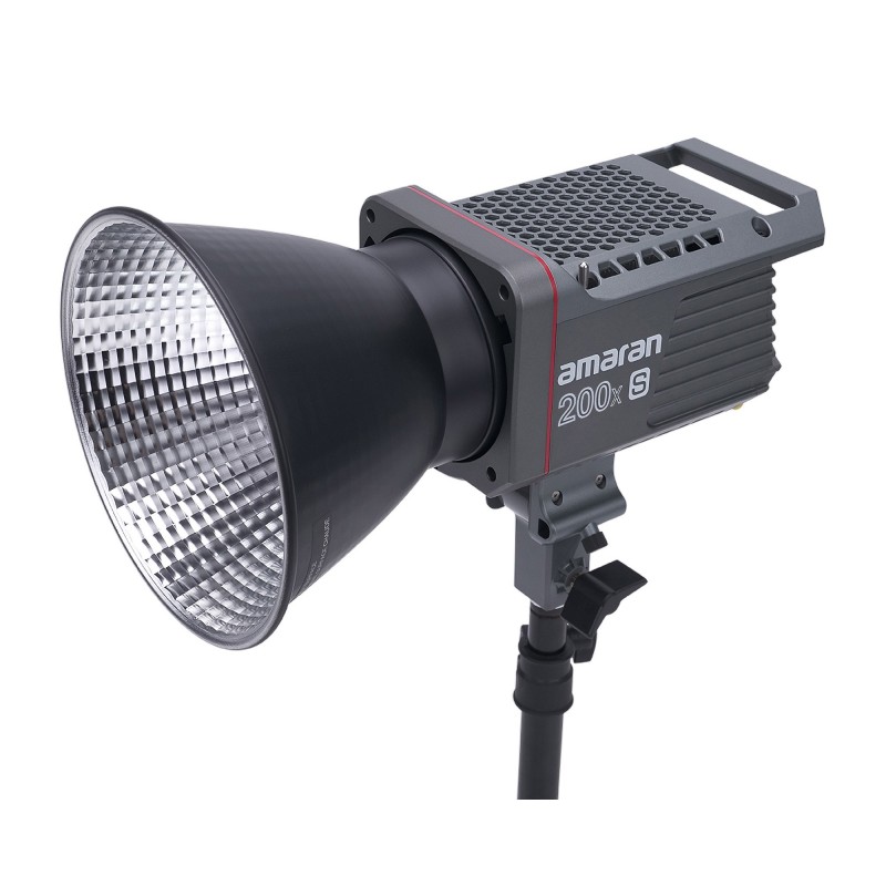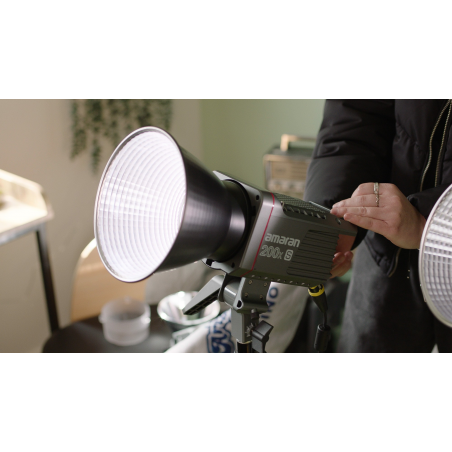 Prezentowana lampa LED wspiera popularny standard Bowens, wykorzystywany do montażu popularnych w świecie filmu i fotografii modyfikatorów światła. Setki akcesoriów, takich jak wrota, czasze, softboxy, gridy lub strumienice czekają na połączenie z modelem Amaran 200x S. Wisienką na torcie jest otwór na parasolkę, który znajdziesz na mocowaniu zintegrowanym z lampą.
