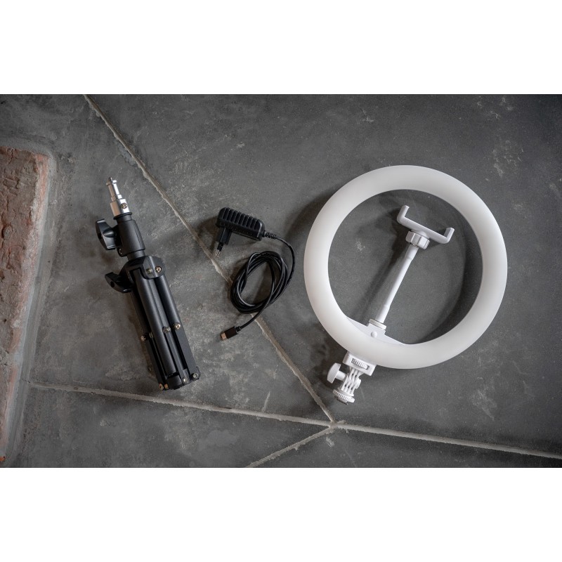 Lampa pierścieniowa LED Newell RL-10A Arctic White to nieocenione wsparcie w fotografii portretowej, produktowej i makro. Urządzenie z powodzeniem sprawdzi się również wśród vlogerów, streamerów lub tiktokerów szukających poręcznego źródła światła, które uzupełni domowe studio. Newell RL-10A to także wspaniały sposób na równomierne oświetlanie twarzy wśród osób zajmujących się wizażem. Ergonomiczna regulacja mocy i temperatury barwowej umożliwi precyzyjne dopasowanie parametrów lampy do bieżących potrzeb. Dołączony do zestawu statyw oraz uchwyty na smartfon lub aparat zapewnią wygodną pracę w każdych warunkach.