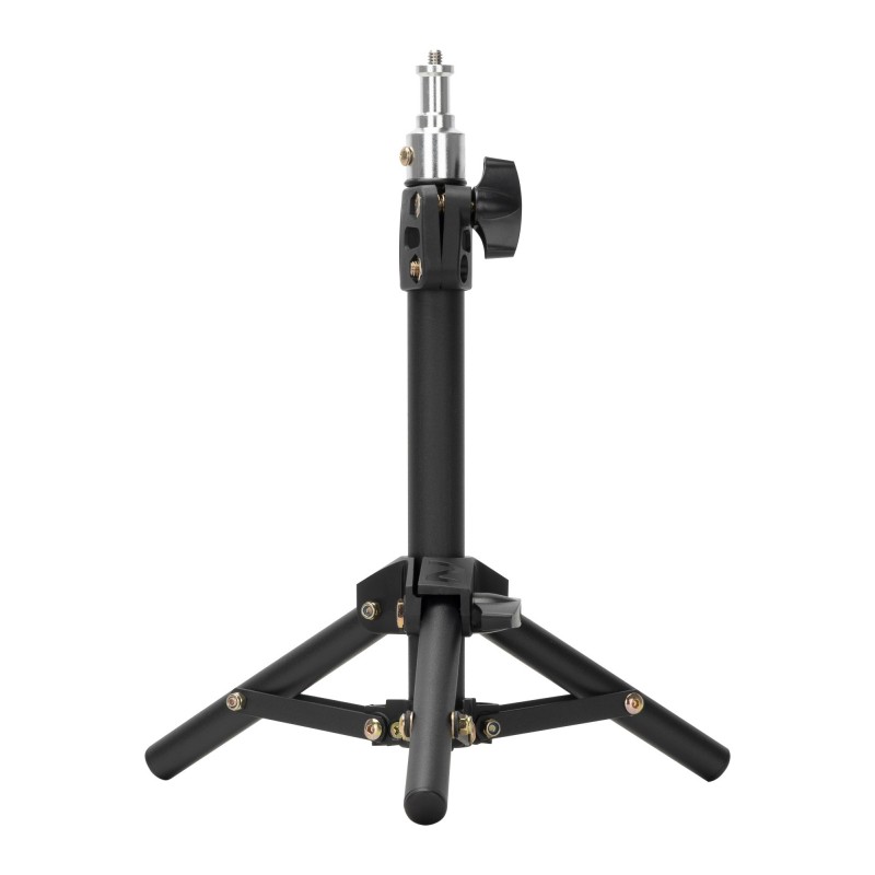 Do zestawu dołączono rozkładany statyw, który pozwoli ustawić lampę w odpowiedniej pozycji i w razie potrzeby szybko zmienić jej położenie. Dodatkowym atutem jest regulacja wysokości, która usprawni tempo pracy, podczas fotografowania osób o różnym wzroście lub przedmiotów o zróżnicowanych gabarytach.