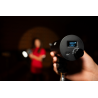 Urządzenie wyposażono w podświetlany ekran, który pozwoli kontrolować parametry światła nawet w całkowitych ciemnościach. Do nawigacji służy wielofunkcyjne pokrętło z wbudowanym przyciskiem, pozwalające na szybkie i precyzyjne sterowanie jasnością, temperaturą barwową czy efektami specjalnymi. Strumienicę Newell Perseo Mini można więc obsługiwać jedną ręką, bez zbędnego przeszukiwania menu czy sięgania po instrukcję.