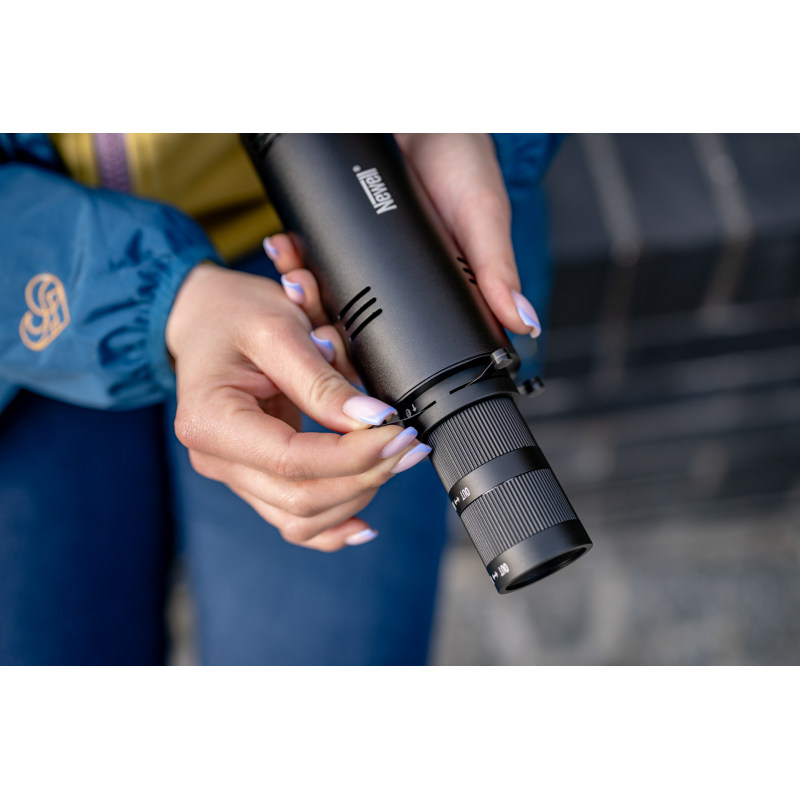 Strumienica Newell Perseo Mini została wyposażona w układ soczewek wzmacniających, który aż 16-krotnie zwiększa intensywność strumienia świetlnego, jakie generuje to 20-watowe urządzenie. Dzięki temu wiązka z łatwością przebija się przez ambientowe światło w pomieszczeniu lub oświetla wybrane fragmenty sceny. To idealny wybór do tworzenia punktowych akcentów świetlnych, podkreślania detali i budowania określonego klimatu Twoich zdjęć i filmów.
