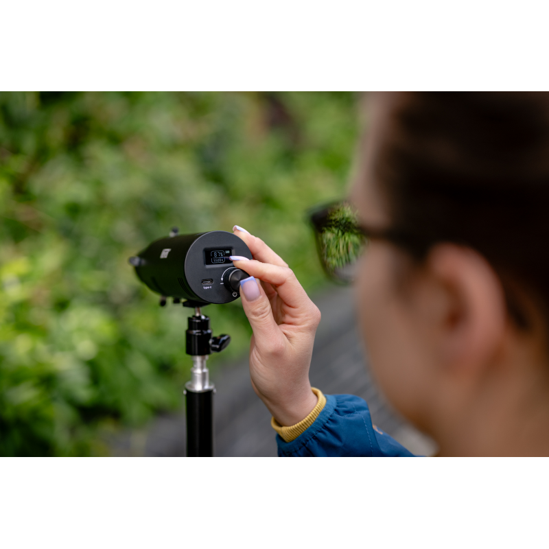 Strumienica Newell Perseo Mini została wyposażona we wbudowany akumulator o pojemności 3000 mAh, który zapewnia nawet do 1,5 h pracy bez potrzeby sięgania po ładowarkę. To idealne rozwiązanie do zdjęć plenerowych, sesji w nietypowych lokalizacjach czy dynamicznych ujęć, gdzie nie ma miejsca na plączące się pod nogami kable. Urządzenie obsługuje zasilanie przez port USB-C, co oznacza, że możesz je ładować z power banku lub adaptera sieciowego. To pełna mobilność bez żadnych kompromisów.