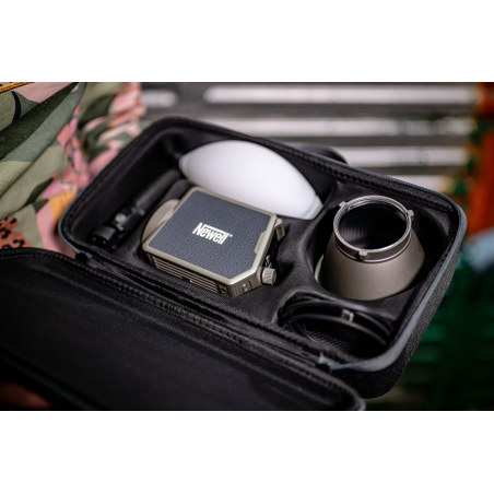 Newell Zora 60 WB to prawdziwa rewolucja, jeśli chodzi o kompromis między wymiarami a funkcjonalnością. Urządzenie skutecznie łączy dużą moc z wbudowanym akumulatorem, kompaktową konstrukcją i profesjonalnymi możliwościami sterowania. Przy wymiarach zaledwie 12,5 x 8,3 x 7,2 cm oferuje parametry, które były dotąd zarezerwowane dla znacznie większych i cięższych lamp studyjnych. Dzięki temu może z powodzeniem konkurować z klasycznymi urządzeniami zasilanymi z sieci – i często przewyższa je swoimi możliwościami, oferując mobilność, szybką adaptację do potrzeb i gotowość do pracy w każdych warunkach. To idealne narzędzie dla twórców, którzy nie chcą wybierać między jakością a wygodą.