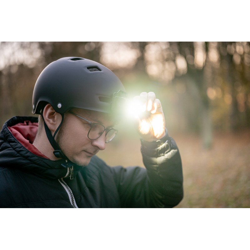 Dzięki specjalnemu mocowaniu z mocną dwustronną taśmą renomowanej marki 3M możesz połączyć latarkę z kaskiem. Wystarczy odpiąć od niej opaskę na głowę i sięgnąć po dodatkowe akcesorium, które znajdziesz w zestawie. To praktyczne rozwiązanie zapewni jeszcze większą swobodę ruchów wszędzie tam, gdzie musisz mieć na głowie kask, aby w pełni zadbać o swoje bezpieczeństwo.