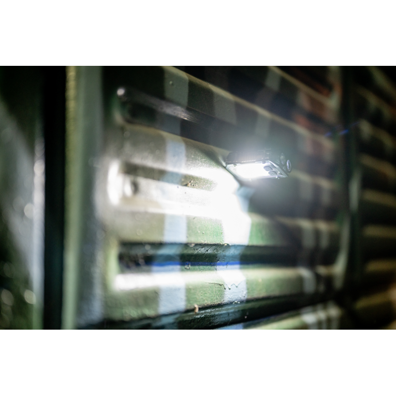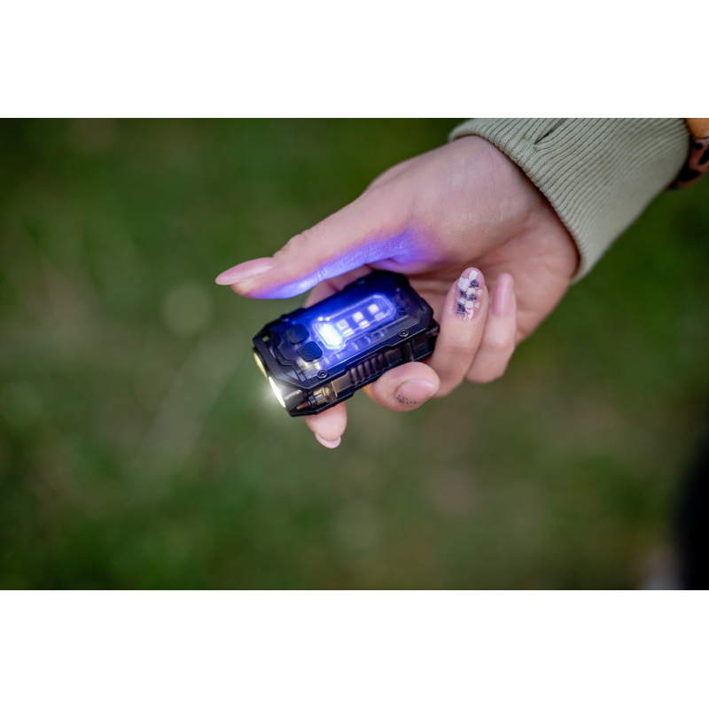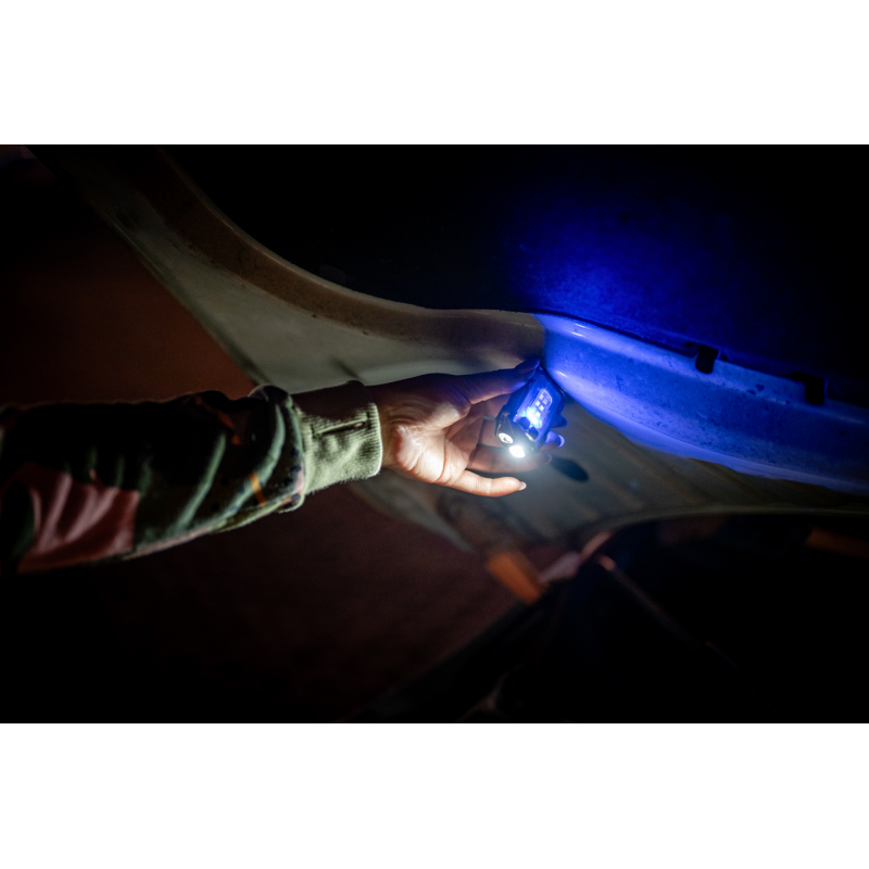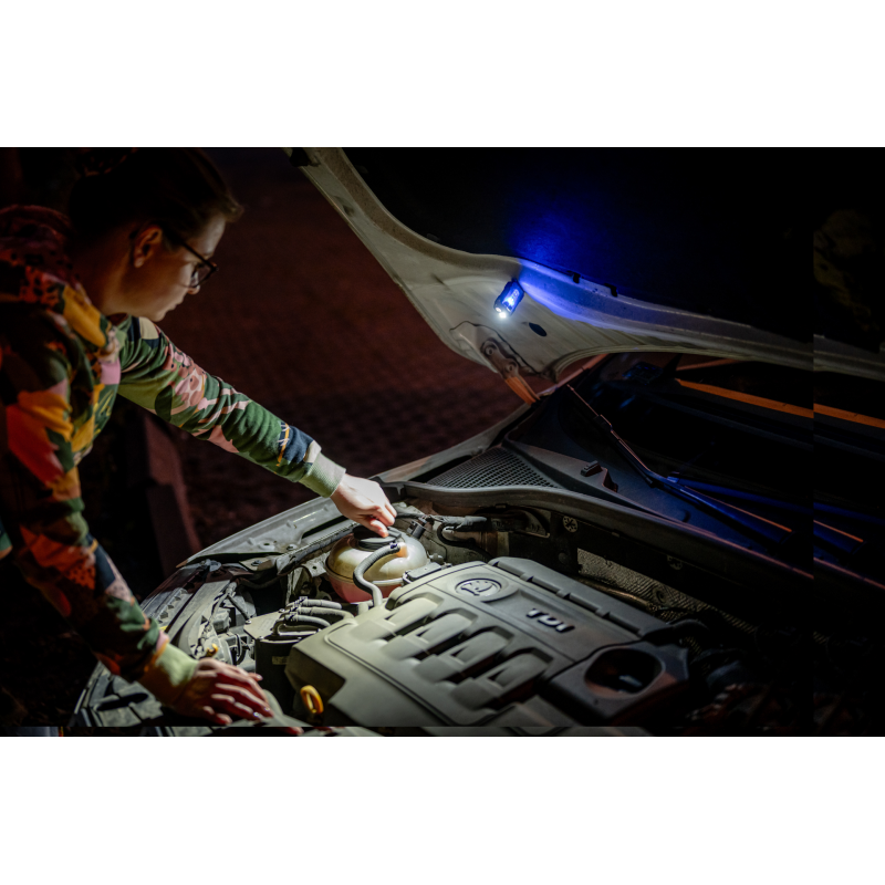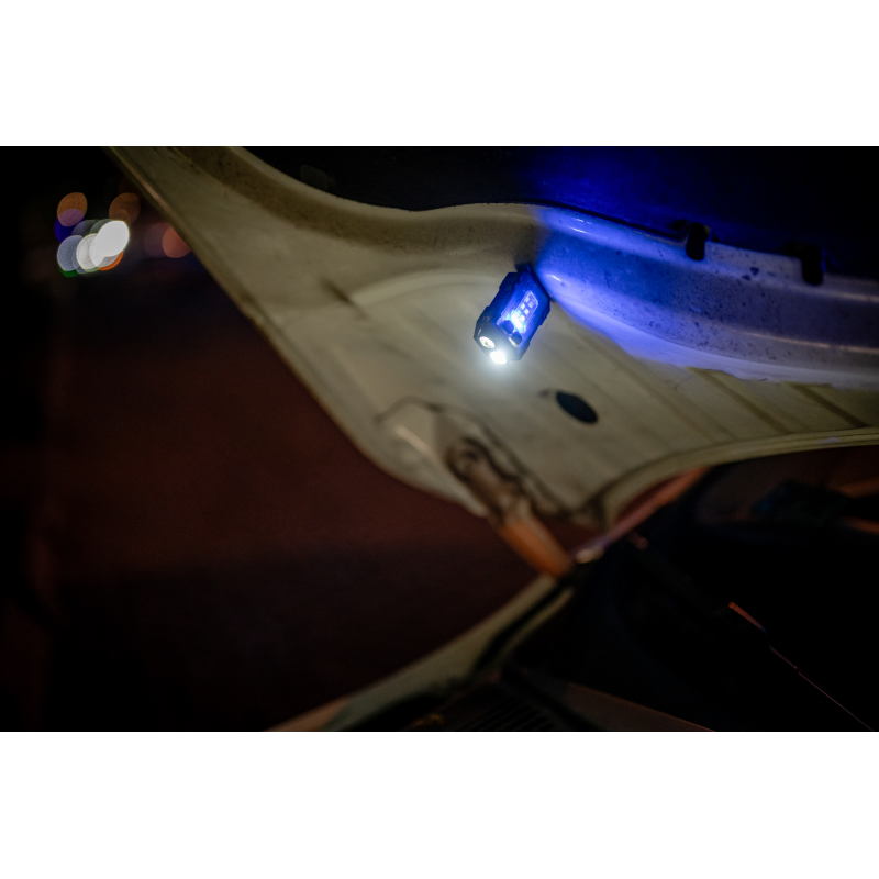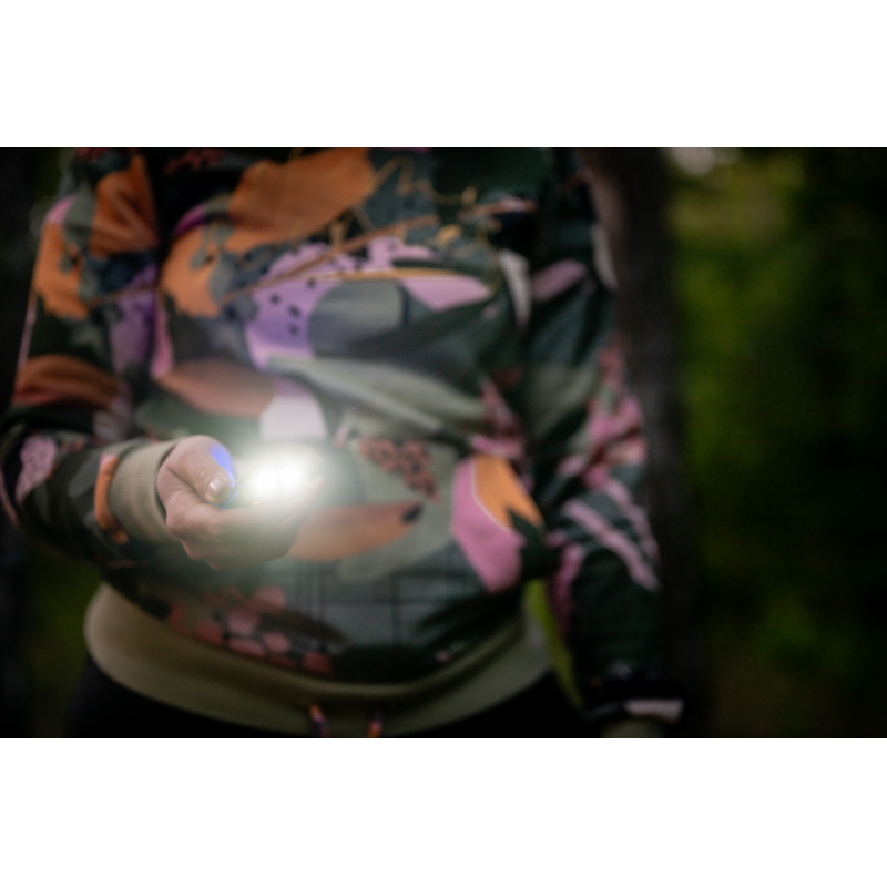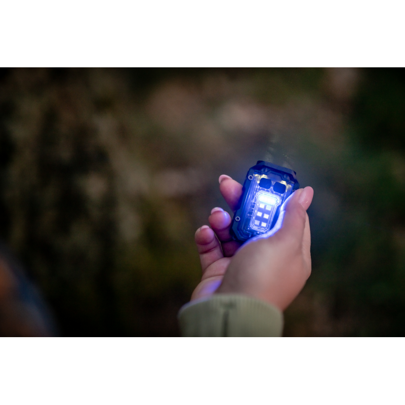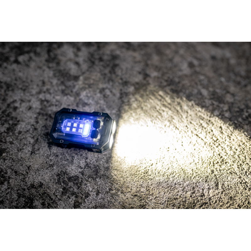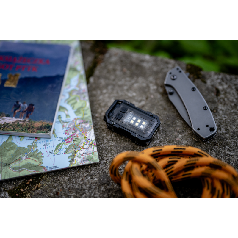 Dodatkowym źródłem światła, w które wyposażono latarkę Newell EDC Nyks Solid jest boczny panel LED. Pozwala on m.in. emitować klasyczne białe światło. Gdy wybierzesz ten tryb pracy, urządzenie może zostać wykorzystane jako efektywna lampa robocza. Równomiernie rozproszone światło świetnie sprawdzi się podczas precyzyjnych prac remontowych, czytania lub majsterkowania; wszędzie tam, gdzie dostęp do światła jest ograniczony.