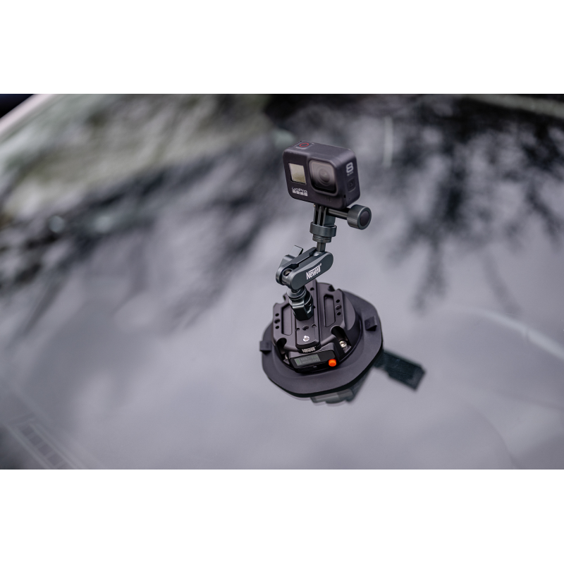 Przyssawka elektryczna Newell została stworzona do pracy na gładkich, płaskich i nieporowatych powierzchniach, takich jak szyby samochodowe, lakierowane panele, płytki ceramiczne, lustra czy szklane witryny. Średnica powierzchni ssącej wynosząca 112 mm zapewnia wystarczająco duży obszar kontaktu dla stabilnego montażu. Szeroki zakres temperatur pracy (od -20°C do +70°C) oraz klasa szczelności IP65 sprawiają, że urządzenie poradzi sobie zarówno podczas zimowych ujęć w plenerze, jak i w upalne dni podczas nagrań z samochodu. Solidna konstrukcja z wytrzymałego stopu aluminium uzupełnionego o silikonowe i akrylowe elementy gwarantuje długoletnią niezawodność nawet przy bardzo intensywnym użytkowaniu.