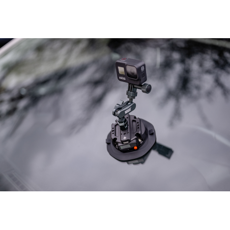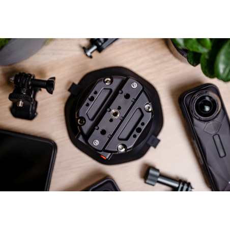 Przyssawka oferuje kompletny zestaw punktów montażowych kompatybilnych z najpopularniejszymi standardami w branży foto-video. Znajdziesz tu uniwersalny gwint 1/4" pasujący do aparatów, kamer i standardowych uchwytów fotograficznych. Po wyjęciu adaptera zyskasz też dostęp do mocowania 3/8". Zintegrowana szyna NATO umożliwia szybkie podłączanie profesjonalnych akcesoriów filmowych bez użycia narzędzi. Otwory pozycjonujące ARRI zapewniają jeszcze lepszą kompatybilność z zaawansowanymi systemami montażowymi. Dzięki temu przyssawka współpracuje z mocowaniami przegubowymi, ramionami „magic arm”, uchwytami samochodowymi, klatkami operatorskimi i setkami innych akcesoriów.