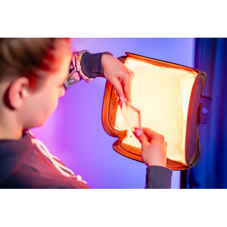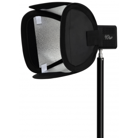 Wnętrze softboxa Newell 25 cm Mini Bowens zostało wykończone srebrnym materiałem, który maksymalizuje odbicie i wykorzystanie mocy lampy. Każda porcja światła emitowanego przez lampę LED Tara 40 RGB jest skutecznie odbijana w stronę dyfuzora i dalej – w kierunku fotografowanego obiektu. To przemyślana konstrukcja łącząca efektywność z funkcjonalnością. Dzięki niej zyskujesz maksymalną jasność przy minimalnych stratach energii.