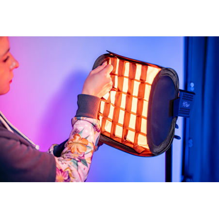 W zestawie z softboxem kwadratowym Newell 25 cm Mini Bowens znajdziesz również grid, który pozwala zawęzić kąt świecenia i zapobiega niekontrolowanemu rozlewaniu się światła na boki. To szczególnie przydatne podczas pracy w niewielkich pomieszczeniach, gdzie chcesz uniknąć odbić od ścian lub gdy zależy Ci na kinowym, skupionym świetle z charakterystycznymi cieniami.
