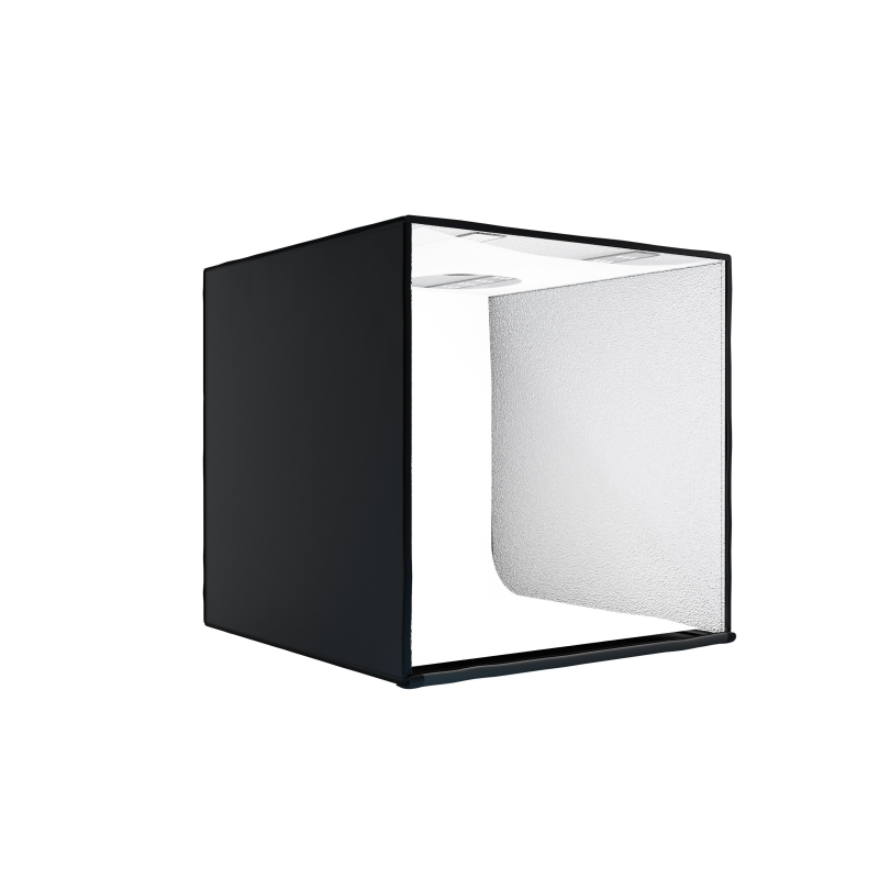 Namiot został wyposażony w dwa panele LED, których pozycję można regulować, w celu osiągnięcia różnych setupów oświetleniowych. Jego wnętrze zostało pokryte specjalnym materiałem, który równomiernie rozprowadza generowane przez lampy światło. Dzięki temu skutecznie wyeliminujesz cienie ze swoich zdjęć produktowych. Specjalny dyfuzor pozwala uzyskać efekt rozproszonego, miękkiego światła, redukując przy tym powstawanie odblasków oraz odbić na fotografowanym produkcie.