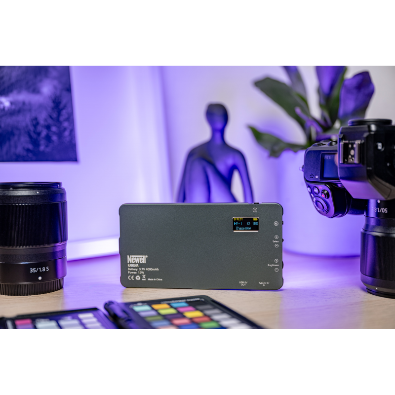 Z pomocą lampy Newell RGB-W Rangha Twoje zdjęcia i filmy mogą zostać uzupełnione o kolorowe światło, które doda ujęciom i kadrom niepowtarzalnego charakteru. Paleta HSI to 360 barw, które możesz dopasować do swoich potrzeb, regulując ich nasycenie i jasność. To aż 36000 różnych kombinacji kolorów! Nie musisz już korzystać z folii efektowych, ani filtrów. Niewielka lampa pozwoli Ci uzyskać wyjątkowe kolorowe efekty już na etapie naciskania spustu migawki lub przycisku "record"!