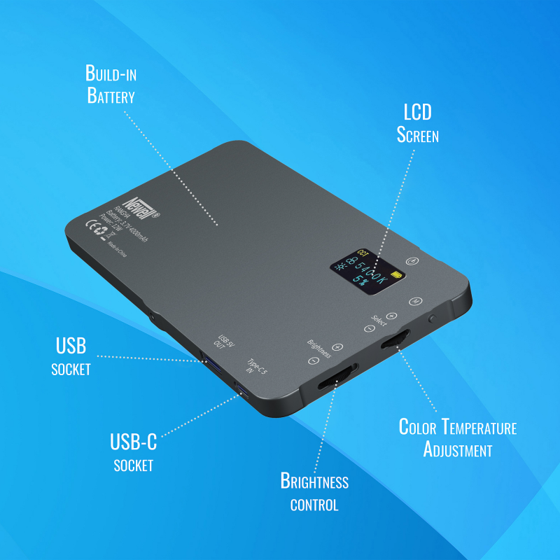 Dzięki wbudowanemu akumulatorowi o pojemności 4000 mAh możesz zapomnieć o klasycznych bateriach paluszkach. Newell RGB-W Rangha będzie też idealnym wyborem wszędzie tam, gdzie dostęp do gniazdka może być ograniczony. Przy maksymalnej mocy wbudowany akumulator zapewnia nawet do 90 minut nieprzerwanej pracy, co czyni urządzenie niezawodnym wsparciem podczas plenerowych sesji zdjęciowych i nagrań video.