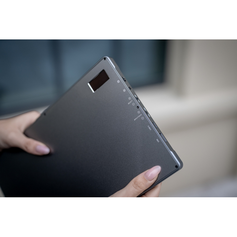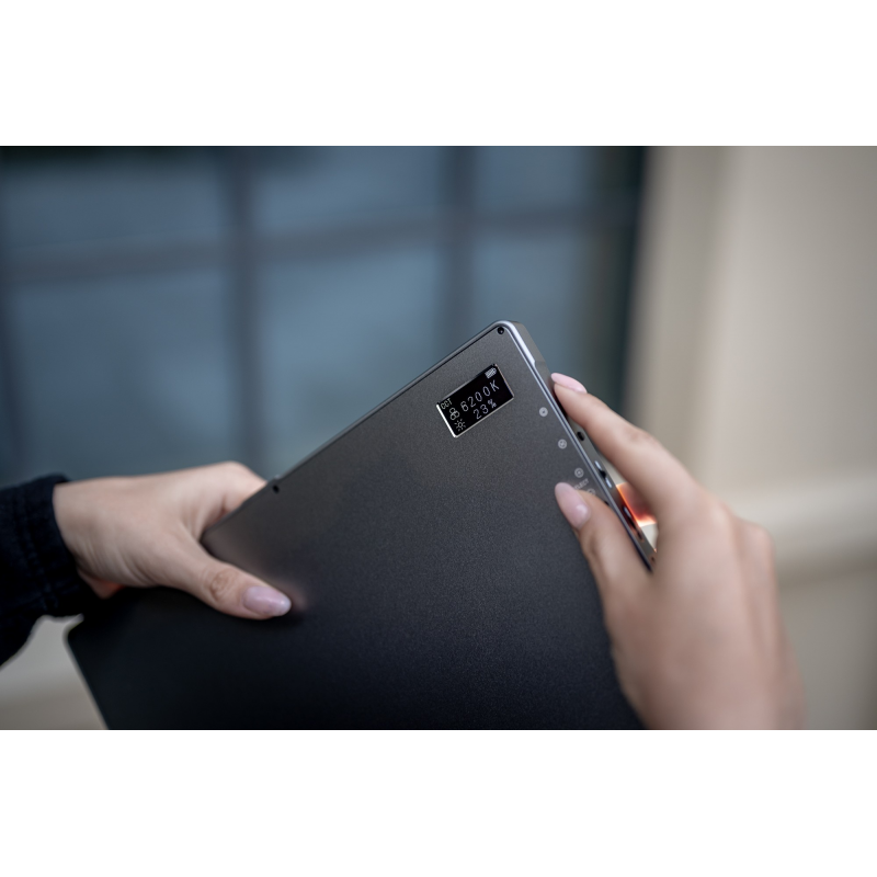 Newell RGB-W Rangha Max XL to kompaktowy panel LED o imponujących wymiarach 28 na 18 cm, który spełni oczekiwania zarówno fotografów, jak i twórców video. Urządzenie oferuje regulację temperatury barwowej (2500 - 9900 K), a także możliwość zmiany koloru światła w obrębie przestrzeni barw HSI. Intuicyjną obsługę lampy zapewniają ergonomiczne pokrętła i przyciski, a także podświetlany ekran OLED. Trzy gwinty 1/4" oraz dołączony do zestawu adapter zimnej stopki to rozwiązania, które pozwolą połączyć lampę ze statywem lub akcesoriami foto-video. Port USB-C umożliwia szybkie uzupełnianie energii we wbudowanym akumulatorze (23000 mAh). Gniazdo USB-A pozwala ładować inne urządzenia bezpośrednio z lampy. Producent nie zapomniał też o 21 efektach specjalnych (m.in. stroboskop, świeca lub światła radiowozu).