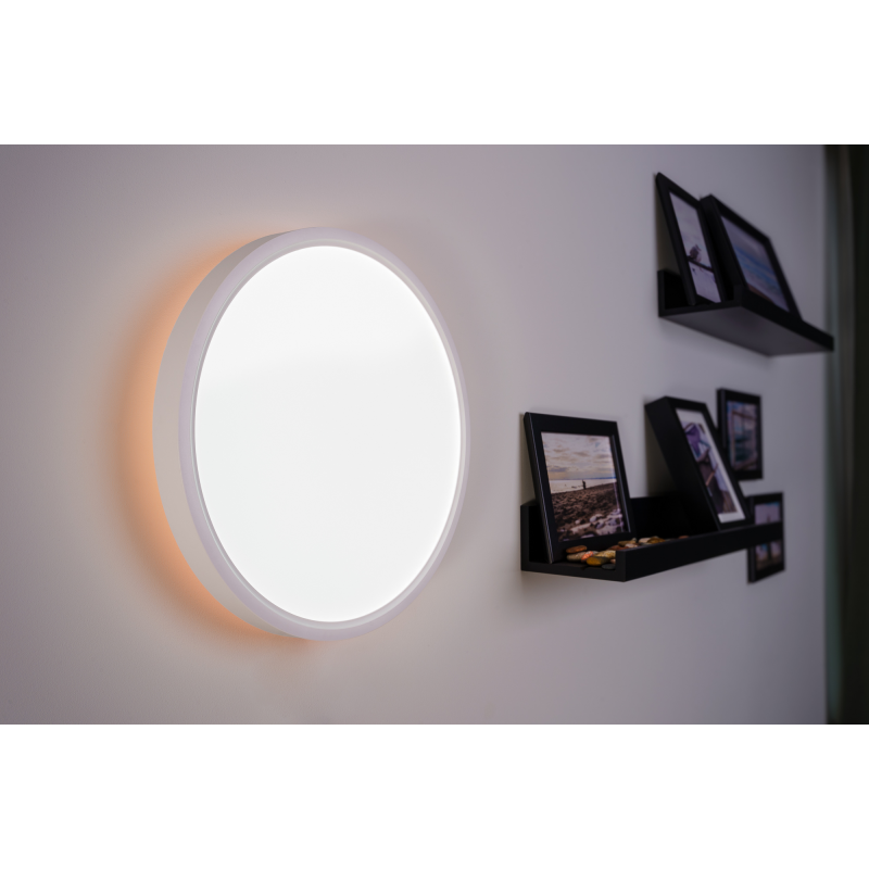 Dzięki lampie Newell Asteria na nowo odkryjesz, jak wiele możliwości kreacji atmosfery pomieszczenia może zapewnić światło sufitowe. Okrągły plafon o średnicy 30 cm wyposażono w dwa niezależne panele LED, które nie tylko oświetlą Twoje wnętrze, ale także dodadzą mu niepowtarzalnego charakteru. Główna część lampy skrywa diody CCT, które umożliwiają płynną regulację temperatury barwowej w zakresie od 3000 K do 6500 K. To jednak nie wszystko. Świetlny okrąg umieszczony bliżej sufitu, który tworzą diody RGB, oferuje aż 16 milionów kombinacji kolorów. Dzięki tak szerokim możliwościom regulacji światła z łatwością dopasujesz atmosferę pomieszczenia do swojego nastroju lub stylu wnętrza.