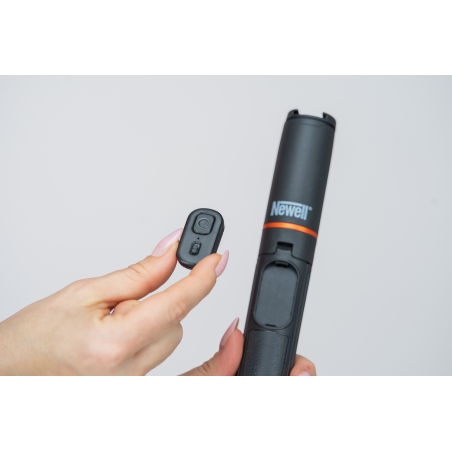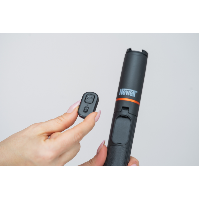 W zestawie ze statywem Newell M-Pod Pro znajdziesz kompaktowego pilota zdalnego sterowania, który pozwala wyzwalać migawkę lub rozpocząć nagrywanie z odległości do 15 metrów. To praktyczne rozwiązanie przy zdjęciach grupowych, selfie, nagraniach treningów czy pracy solo przed kamerą. Pilot współpracuje zarówno z systemem iOS, jak i Android, a specjalny punkt montażu umieszczony w rękojeści statywu sprawia, że kontroler z przyciskiem jest zawsze pod ręką i trudniej go zgubić lub stracić z oczu.