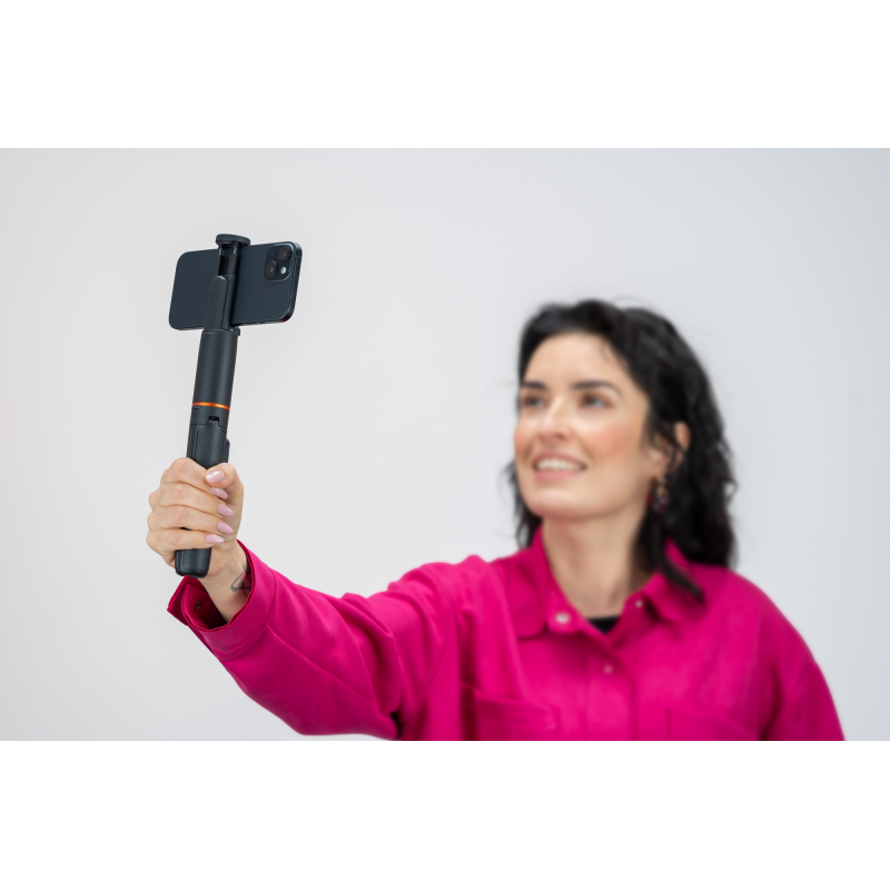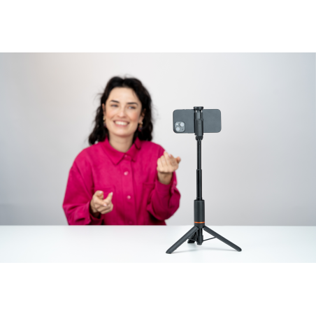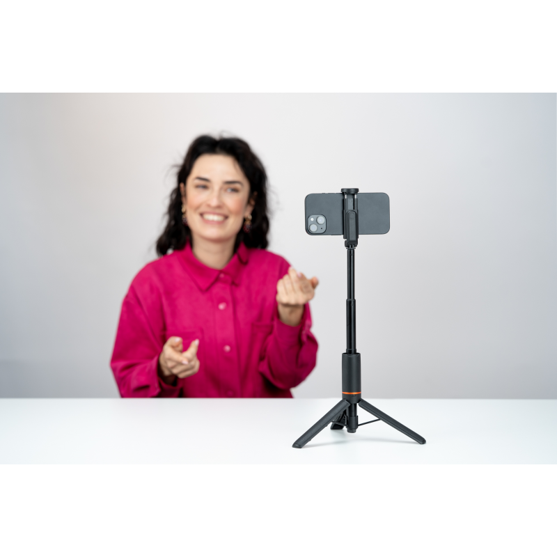 Statyw Newell z funkcją monopodu i pilotem M-Pod Pro został zaprojektowany jako jedno, wszechstronne narzędzie do pracy ze smartfonem – zarówno w domu, jak i w terenie. W zależności od potrzeb może pełnić funkcję stabilnego statywu biurkowego lub podłogowego, a po złożeniu nóg zmienia się w poręczny monopod do nagrań z ręki. Taka konstrukcja pozwala płynnie przechodzić między statycznymi ujęciami a dynamiczną pracą w ruchu, bez konieczności sięgania po dodatkowe akcesoria.