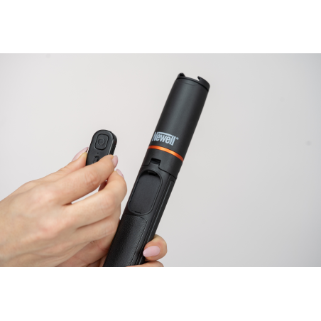 Newell M-Pod Pro to idealny wybór dla osób, które nagrywają i fotografują smartfonem – w domu, w pracy i w terenie. Konstrukcja 2 w 1 pozwala w ciągu kilku sekund zmienić go ze stabilnego statywu w poręczny monopod do ujęć w ruchu. Dołączony pilot pozwala zdalnie uruchomić spust migawki aparatu lub rozpocząć nagrywanie filmu z odległości do 15 metrów. Kontroler Bluetooth jest kompatybilny z systemami iOS oraz Android. Specjalny slot w rękojeści ułatwia przechowywanie pilota. Opcje obrotu (360°) i pochylenia (110°) pomagają szybko ustawić kadr – zarówno w pionie, jak i w poziomie. Zimna stopka umożliwia podpięcie mikrofonu lub małej lampy LED. Całość waży tylko 182 g, dzięki czemu statyw Newell z funkcją monopodu i pilotem M-Pod Pro może być zawsze pod ręką.