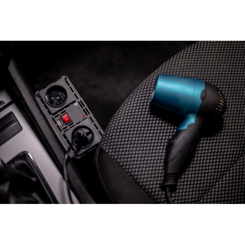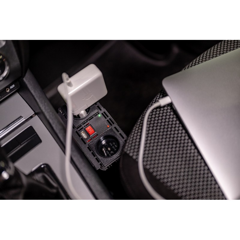 • do przetwornicy z łatwością podłączysz m.in.: grzałkę, zasilacz do laptopa, ładowarkę do urządzeń mobilnych, szlifierkę i wiele innych urządzeń