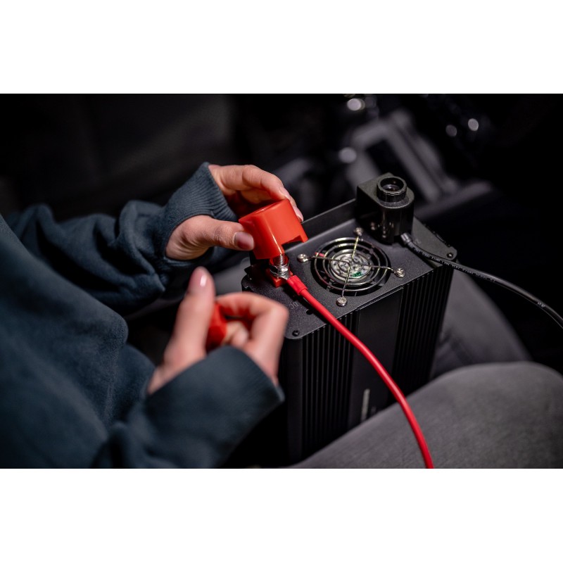 Przetwornica napięcia Newell z modyfikowaną sinusoidą - 24 V / 230 V, 1000 W, którą często nazywa się również inwerterem lub falownikiem to niewielkie urządzenie, które pozwala zamienić prąd stały z akumulatora 24 V na prąd zmienny, z którego korzystamy w domowych gniazdkach elektrycznych. Dzięki niej zyskasz jeszcze większą niezależność podczas podróży kamperem, dalekich wycieczek samochodem lub biwaków.