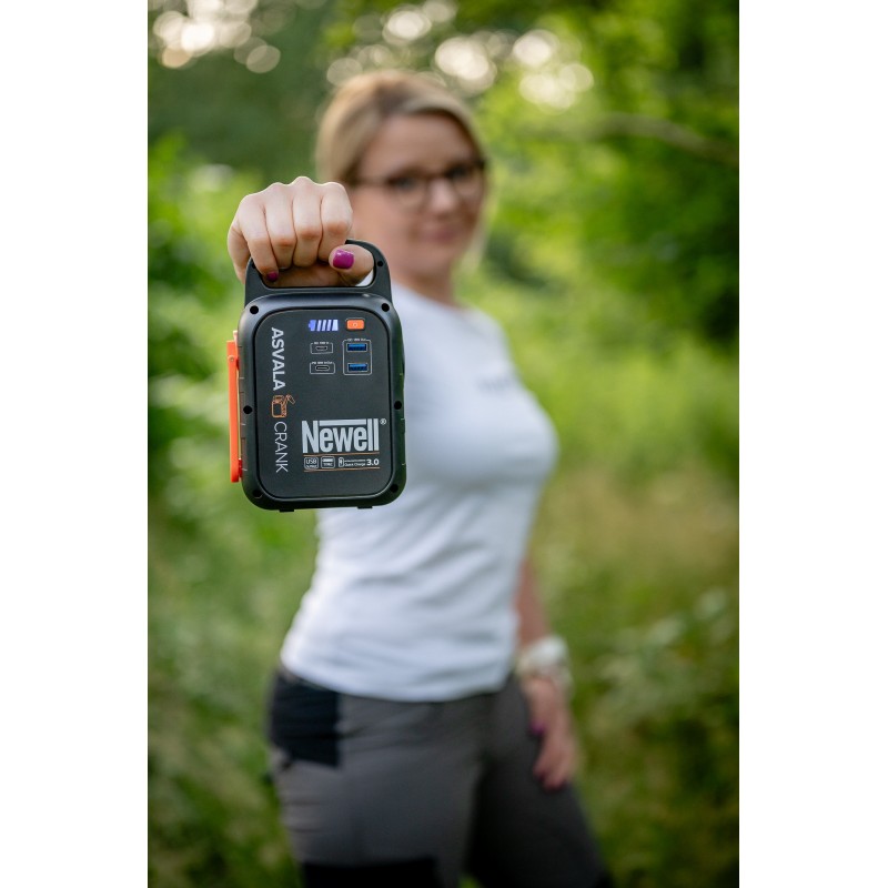Wyposażona w 2 porty USB-A i 1 port USB-C, Power Station Newell Asvala Crank gwarantuje wygodne uzupełnianie energii w Twoich urządzeniach. Niezależnie od tego, czy potrzebujesz naładować smartfon, tablet, laptopa, drona, aparat fotograficzny, czytnik e-booków, kamerę sportową, słuchawki bezprzewodowe, zegarek, latarkę, czy elektronicznego papierosa, ta stacja zasilania pozwoli zrobić to szybko i sprawnie.