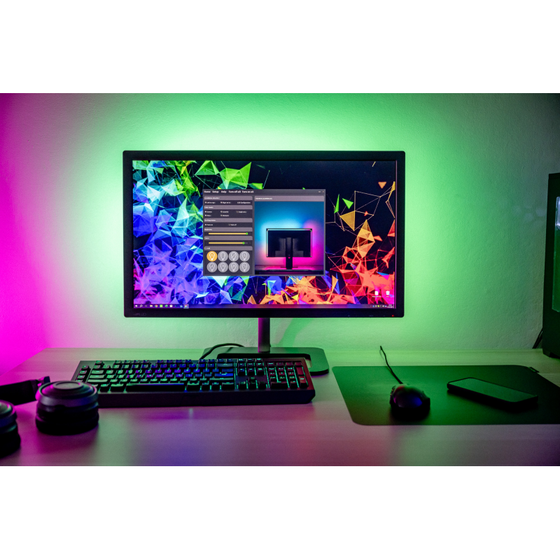 Taśma LED Newell doskonale współpracuje z tym, co wyświetlasz na swoim monitorze, ale to wciąż nie wszystko. Twój pokój mogą też ozdobić unikalne efekty świetlne. Od płynnych przejść kolorów po dynamiczne migotanie – z bezpłatnym programem, który dołączono do zestawu na pendrivie, ogranicza Cię tylko Twoja kreatywność. Z taśmą LED Newell możesz dopasować oświetlenie do swojego nastroju lub stworzyć niepowtarzalną atmosferę dostosowaną do najróżniejszych okazji.